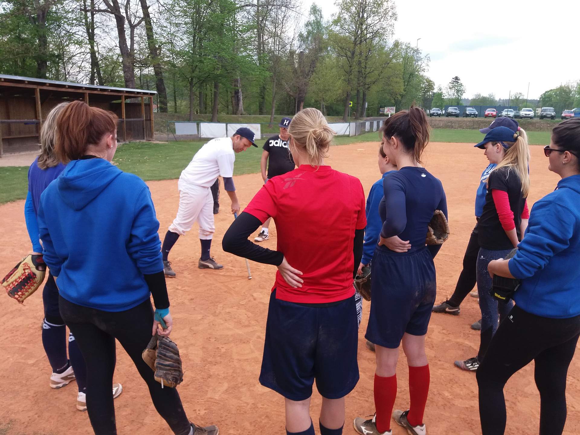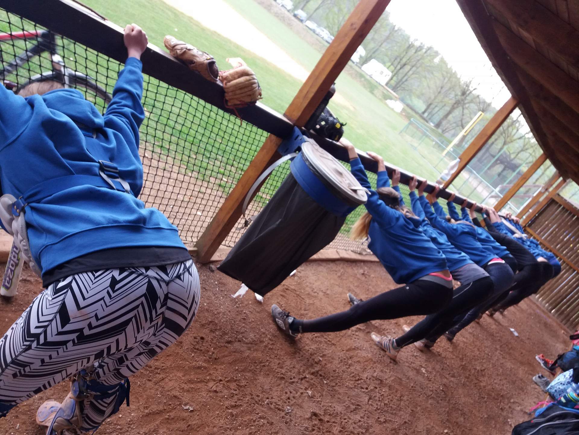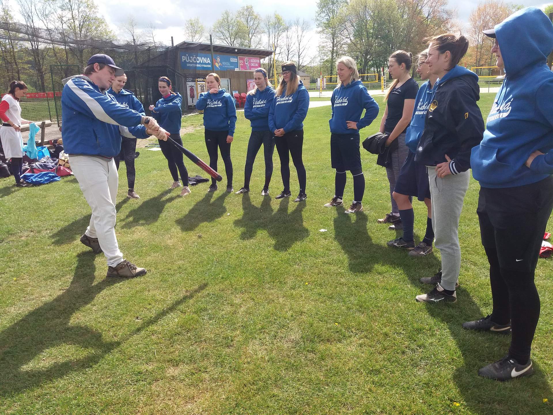 Áčku a překontrolovat, zda si z herních situací z ranního tréninku něco pomatovaly. Kolem druhé hodiny jsme se postily do nadhazovacího a pálkovacího tréninku. Proběhl v rozehřívacím, abychom byly připravené na bývalého ženského trenéra Michala Pirgla. Jak se ukázalo, Michal vůbec nevyšel z formy, a ženy vedl další dvě hodiny, jako kdyby nikdy nepřestal. I tento odpolední trénink si ženy moc užily. Backup dril, který nám Michal představil, budeme jistě využívat častěji. Mužské Áčko mezi tím dohrávalo druhý zápas a tak jsme ještě stihli dofandit poslední dvě směny. Pak jsme vyrazily na super večeři, kterou nám přichystal v zázemí Láďa Mlsek. Sice už svaly na stehnech a rukou moc nesloužily, ale teambuildingový večer v zázemí jsme si parádně užili. Děkujeme klubu za sponzorský dar a to možnost přespat zdarma v pokojích v zázemí.
