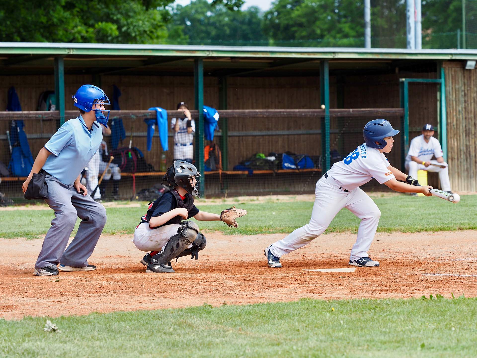 V prvním utkání jsme se chtěli proti Hrochům rozehrát a předvádět poctivý baseball. Akce se střídaly ve svižném tempu. Náš nadhazovač Hugo Borovec, který ještě na tomto postu nemá moc zkušeností, překvapil. Měl dobře nastavenou hlavu a významně přispěl duchu zápasu. Škoda jen, že jsme ho moc nepodpořili v obraně, některé akce jsme vypustili a hráli jako bychom byli předem poraženi. Na pálce nám k dosažení bodu chybělo buď štěstí (line-drivy do rukavic) anebo um při stažení běžců na plné mety. Výsledek 0:16 byl hrozivější, než na co jsme měli.