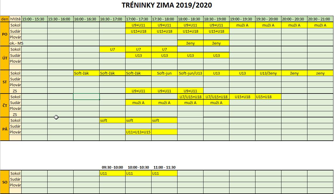 Sobotní trénink U11 v Sokolovně od 9:30 do 11:30 s platností od 1.11.2019
