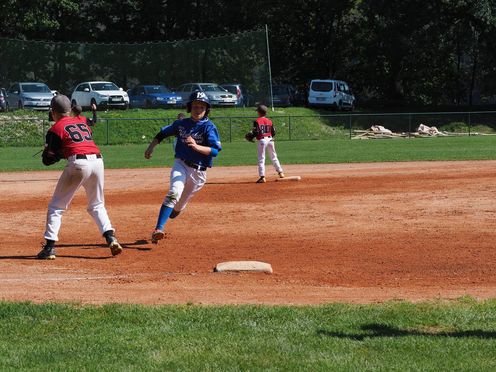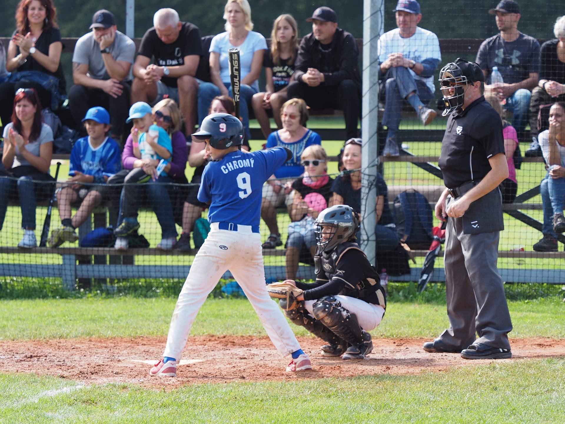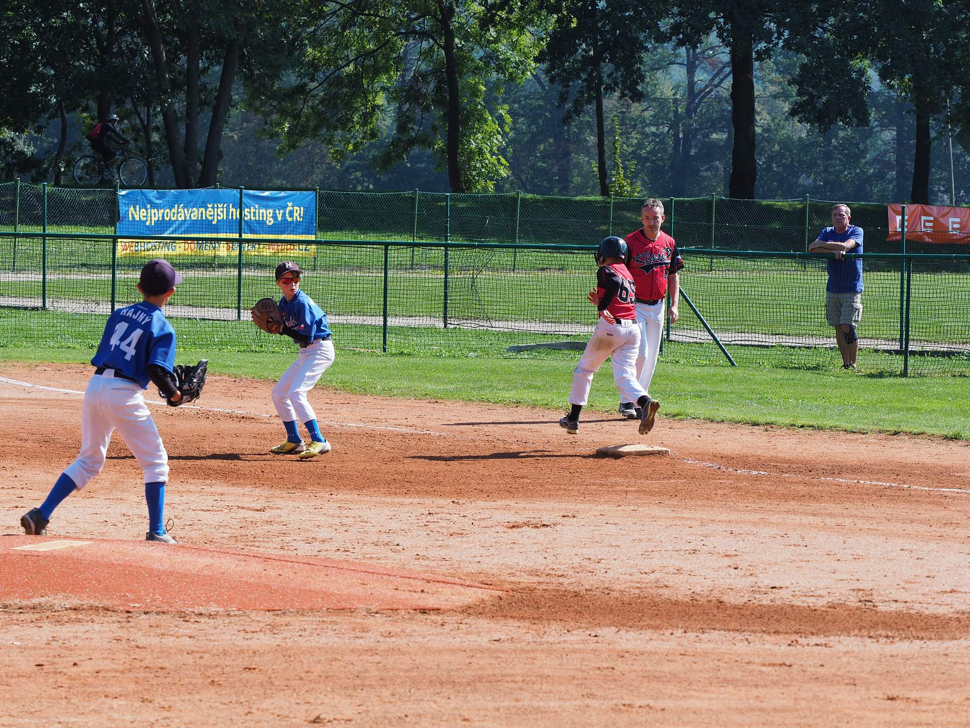 Do Blanska dorazili Hroši Brno, Tempo Titans Praha, Technika Brno, SK Kotlářka a samozřejmě domácí Olympia. Postupující do finále z tohoto turnaje jsou Hroši, Olympia a Titáni. Na naše domácí hřiště přijely porovnat síly Blesk Jablonec, Draci Brno, Klasik Frýdek Místek, Nuclears Třebíč a samozřejmě Sokol Hluboká. Sokol se do tohoto turnaje kvalifikoval rovnou dvakrát – prvenstvím v základní části JHZ přeboru a šestým místem na červnovém ČBP U11. Po počátečních útrapách s počasím, kdy byla všechna hřiště od čtvrtečního večera vydatně zalívána vodou, se začátek turnaje přesunul na sobotu. Hned ráno v 9:00 nás čekal zápas s Bleskem. Už prvním zápasem dostával tým Hluboké svoje fanoušky do varu. Na nadhozu svou práci skvěle odvedl Lukáš Chromý, ale i tak se do hry dostali v první směně dva pálkaři Blesku a utrhli pro svůj tým body. Pak se Blesk odmlčel a Sokol začal dávat bod po bodu. V páté směně vystrčil soupeř růžky a nadělil nám čtyři body a dostal se tak opět do vedení. Na to Sokol odpověděl v šesté směně šesti body a dohazující Ondra Hajný si už běžce pohlídal. Na postup do finálového turnaje MČR jsme potřebovali vyhrát minimálně dva zápasy a tímhle jsme půlku břímě sundali z ramen. Konečný stav zápasu 9:7 pro Hlubokou.