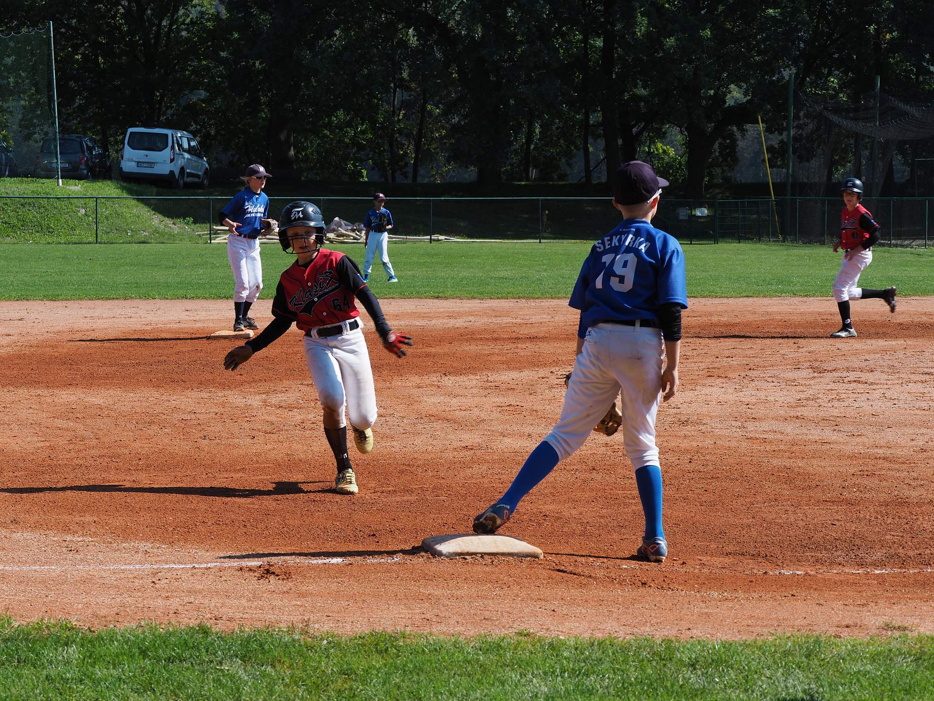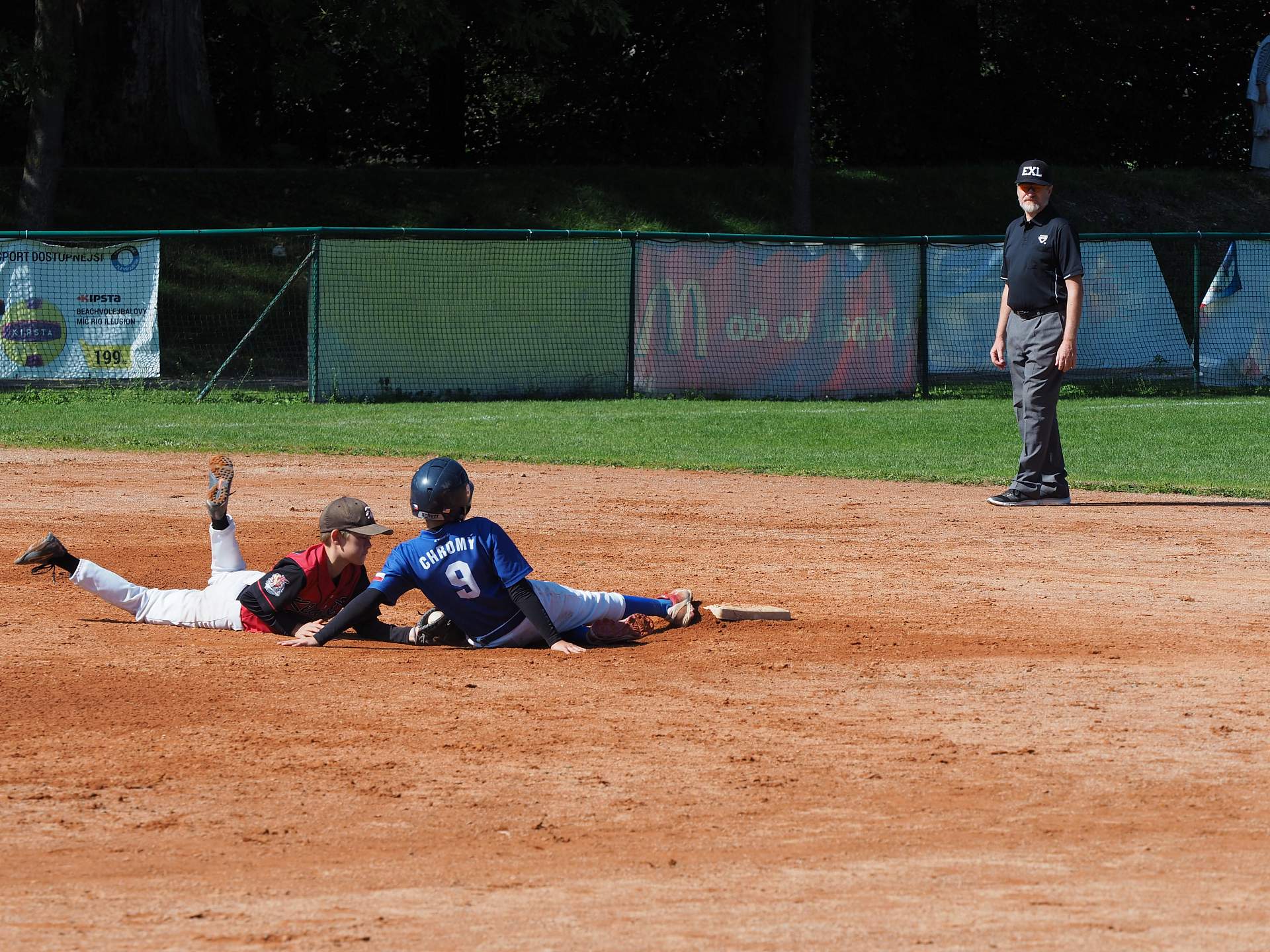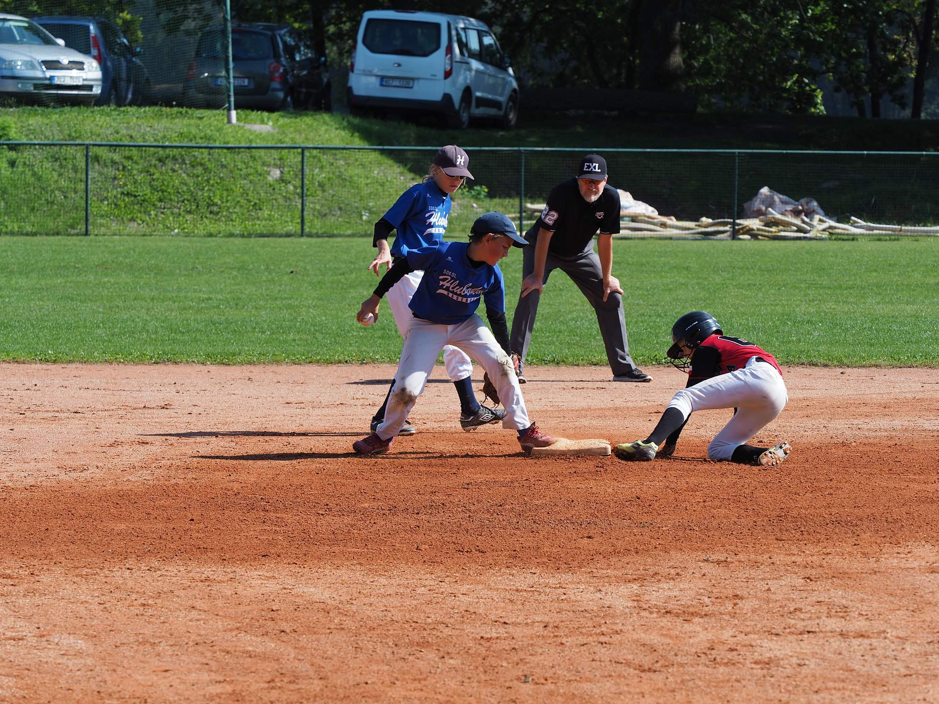 Do Blanska dorazili Hroši Brno, Tempo Titans Praha, Technika Brno, SK Kotlářka a samozřejmě domácí Olympia. Postupující do finále z tohoto turnaje jsou Hroši, Olympia a Titáni. Na naše domácí hřiště přijely porovnat síly Blesk Jablonec, Draci Brno, Klasik Frýdek Místek, Nuclears Třebíč a samozřejmě Sokol Hluboká. Sokol se do tohoto turnaje kvalifikoval rovnou dvakrát – prvenstvím v základní části JHZ přeboru a šestým místem na červnovém ČBP U11. Po počátečních útrapách s počasím, kdy byla všechna hřiště od čtvrtečního večera vydatně zalívána vodou, se začátek turnaje přesunul na sobotu. Hned ráno v 9:00 nás čekal zápas s Bleskem. Už prvním zápasem dostával tým Hluboké svoje fanoušky do varu. Na nadhozu svou práci skvěle odvedl Lukáš Chromý, ale i tak se do hry dostali v první směně dva pálkaři Blesku a utrhli pro svůj tým body. Pak se Blesk odmlčel a Sokol začal dávat bod po bodu. V páté směně vystrčil soupeř růžky a nadělil nám čtyři body a dostal se tak opět do vedení. Na to Sokol odpověděl v šesté směně šesti body a dohazující Ondra Hajný si už běžce pohlídal. Na postup do finálového turnaje MČR jsme potřebovali vyhrát minimálně dva zápasy a tímhle jsme půlku břímě sundali z ramen. Konečný stav zápasu 9:7 pro Hlubokou.