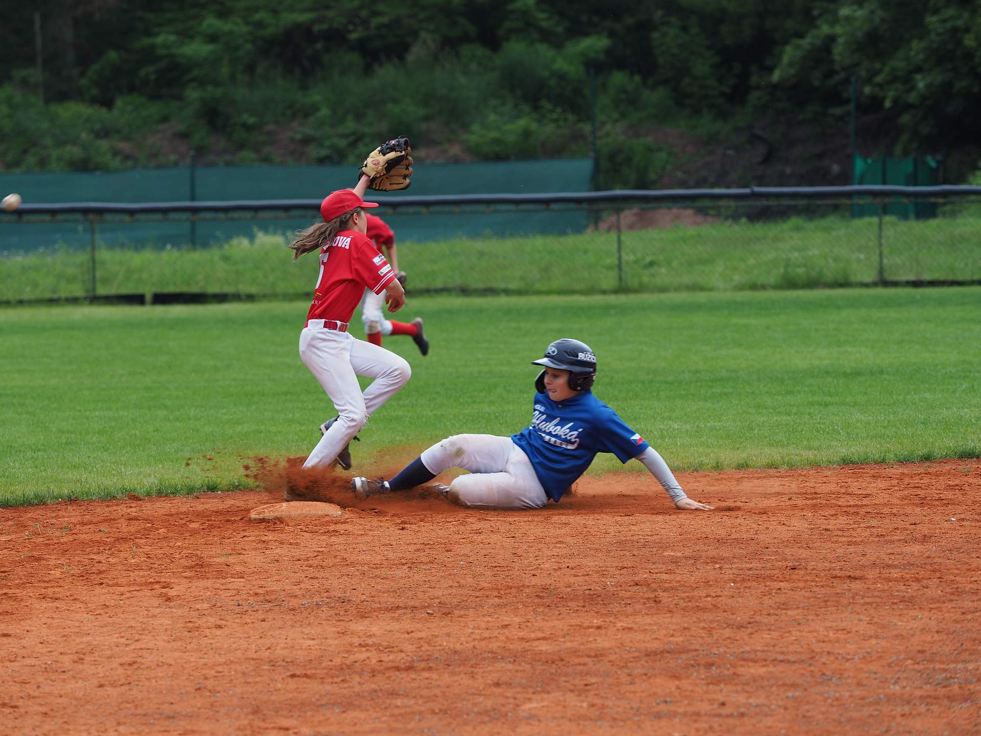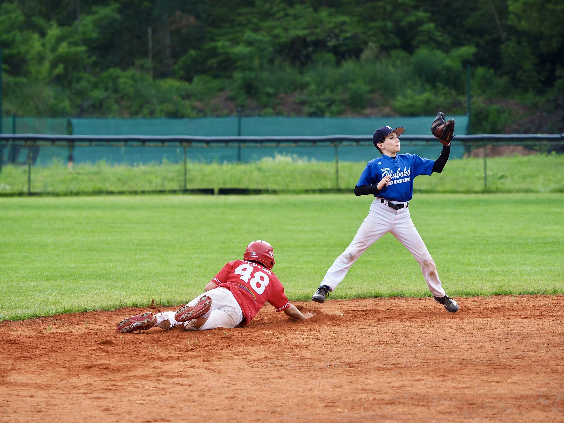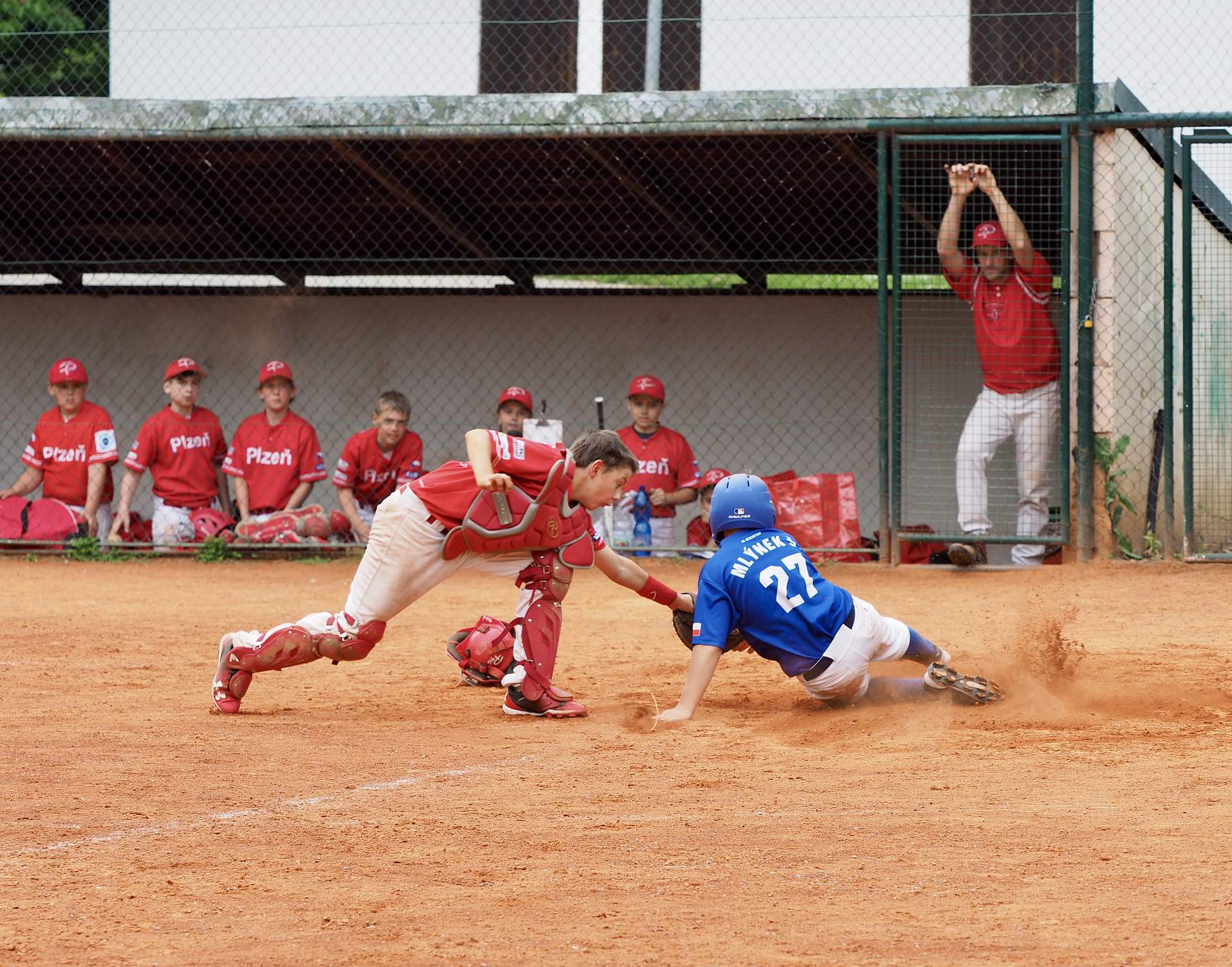 Hned v první směně jako hosté jsme zaútočili a doběhli pro 4 body. Ovšem Domažlice potrestaly naše 4 trestuhodná Ečka a vrátili nám body 3. Další směna byla vyrovnaná a oba týmy doběhly pro 5 bodů. Hra byla o poznání lepší ze strany Domažlic, což bylo jedině dobře. Další průběh už byl v naší moci. Matěj házel výborné technické nadhozy a udržel se po celý zápas, proto má své první complete game za U13. Zbytek týmu rozpálil nového nadhazovače Domažlic a tak zápas skončil 17:8 pro nás. Ovšem Míša Cajz si udělal radost krásným tří bodovým Homerunem přes middle až do parku.