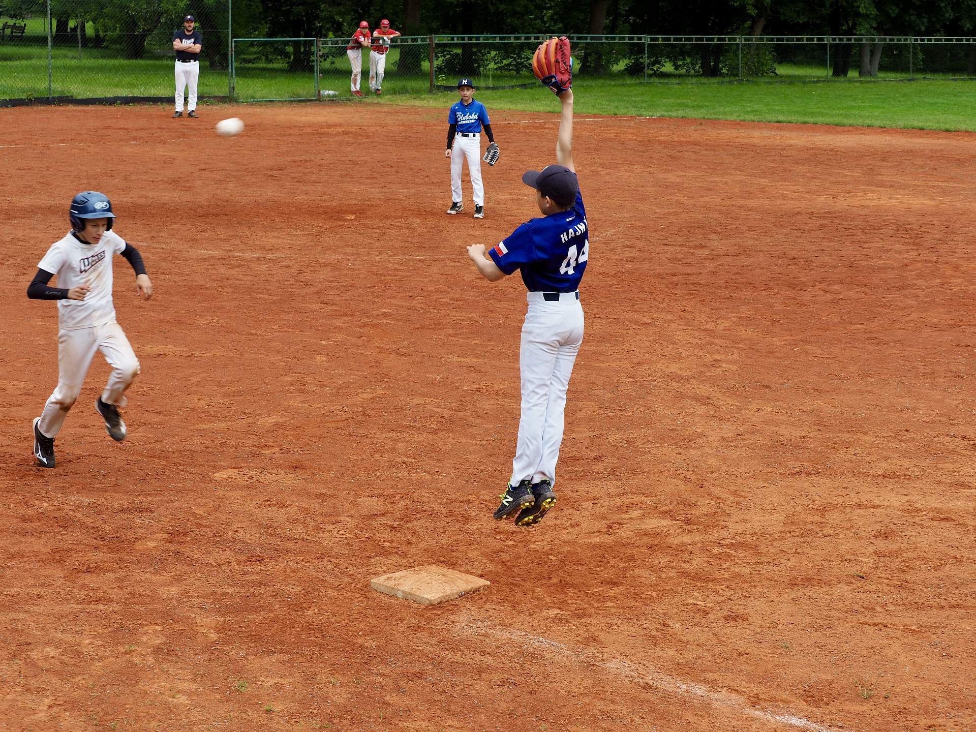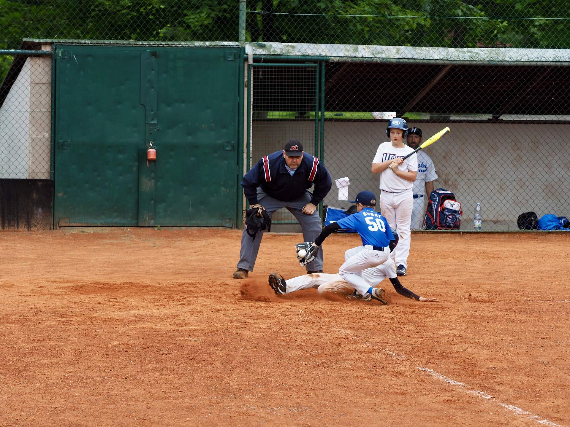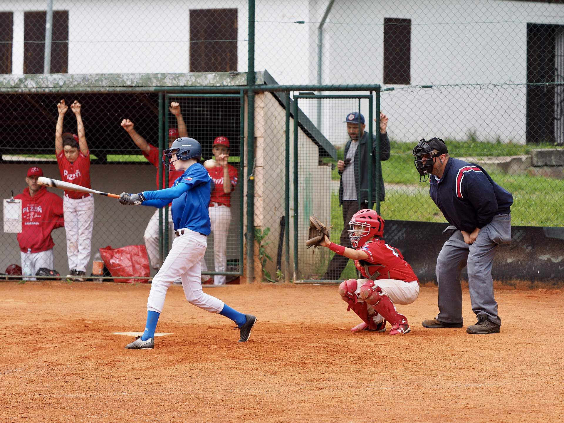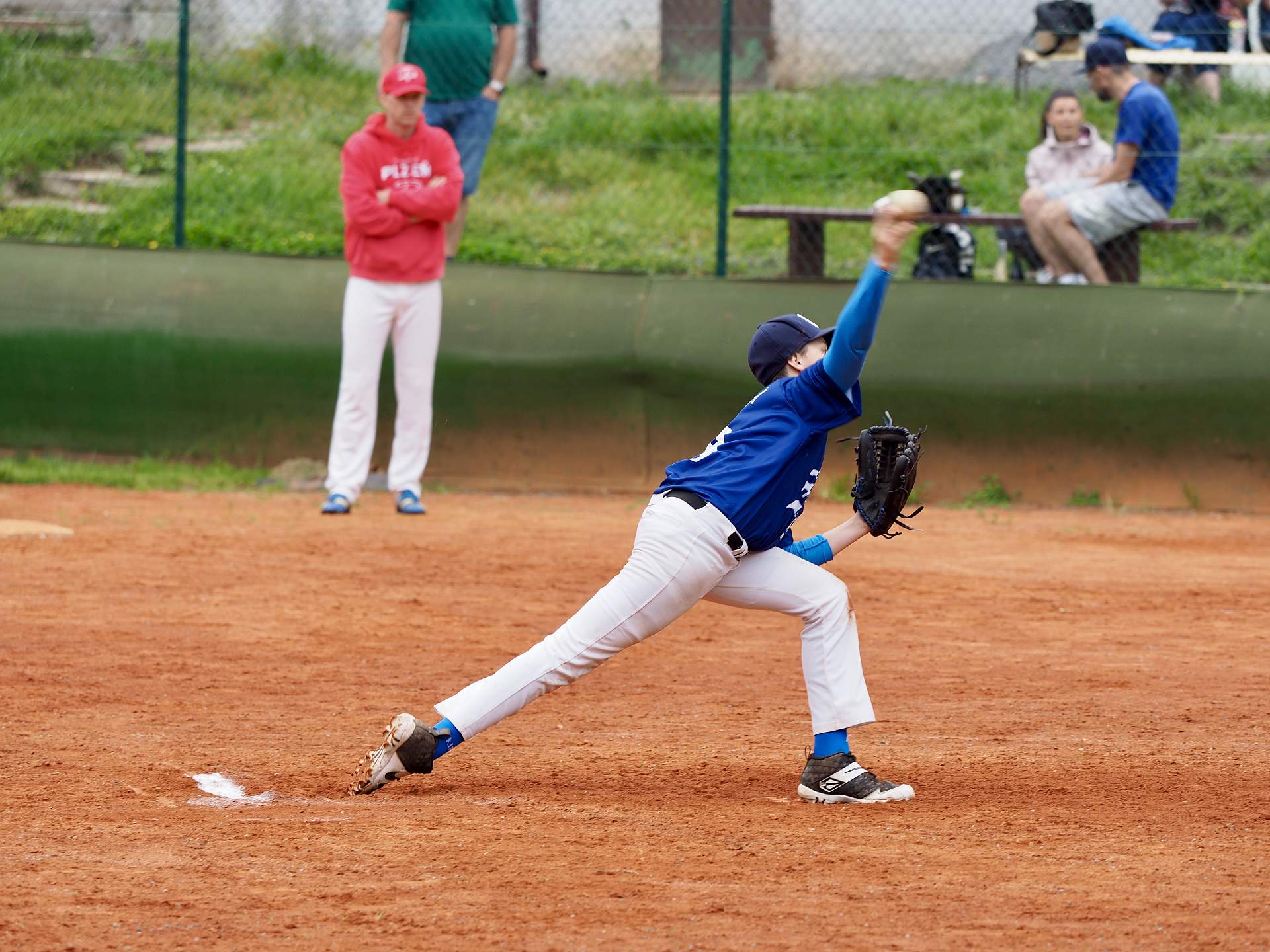 Hned po příjezdu jsme narazili na Wolfs Domažlice. Na pomyslný kopec ( v Plzni je soft hřiště) jsme poslali Matěje Kubáta. I když vzrůstem nejmenší, tak výkon byl největší.