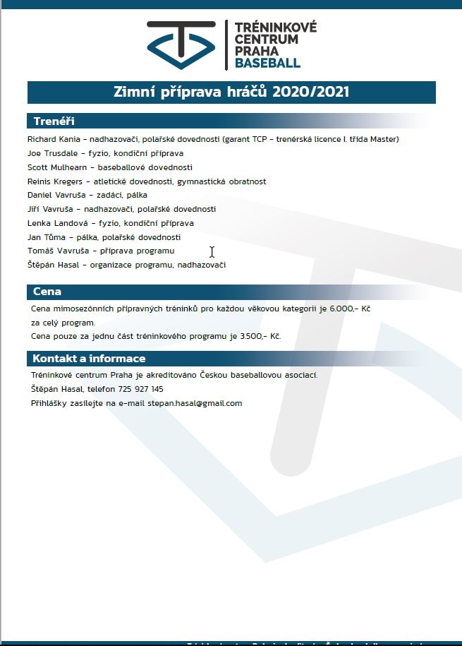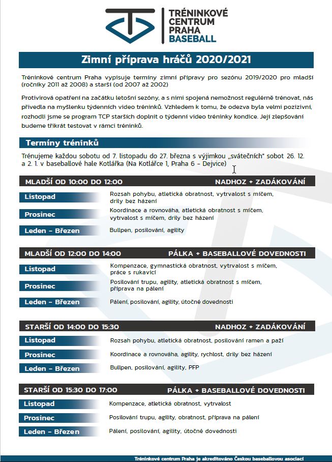 Kapacita TCP je omezena na 30 hráčů v každé kategorii, protože chceme opět zajistit kvalitní individualizovaný trénink.