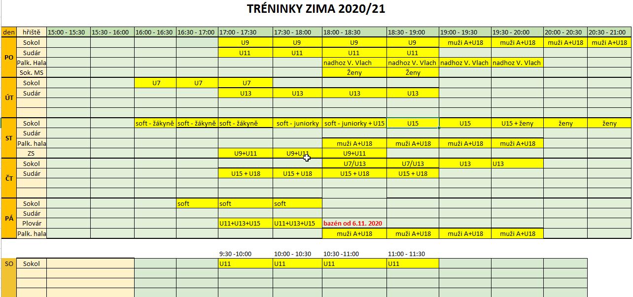 Zimní rozpis tréninkových skupin 2020/21