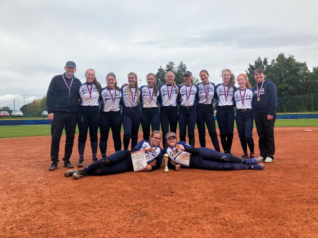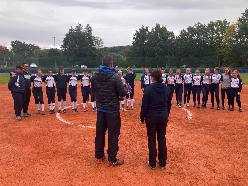Vítězství v sobotních zápasech nás posunulo rovnou do finále. Kdo bude druhým finalistou rozhodl v neděli boj mezi Merklínem a Panthers. Bronzové skončily hráčky z Merklína a finále si tedy zahrála Hluboká s Trnavou. Softballistky ze Slovenska držely vedení až do páté směny. Byly jasně lepší, ,,nahoře“ a směřovaly k vítězství. Naše holky vypadaly zvadle, bez elánu a emocí. Nastartovala je až skutečnost, že nedáme-li bod, končíme. Jak mávnutím proutku se nám začalo dařit na pálce a již jsme nedovolily soupeři ani jeden bod. Dvěma běžeckými homeruny se blýskla Petra Dušková a samozřejmě velkou pochvalu zaslouží nadhazovačky. Nakonec si po velkém boji zlaté medaile na krk pověsily domácí a ukončily tak krásným úspěchem letošní sezonu.