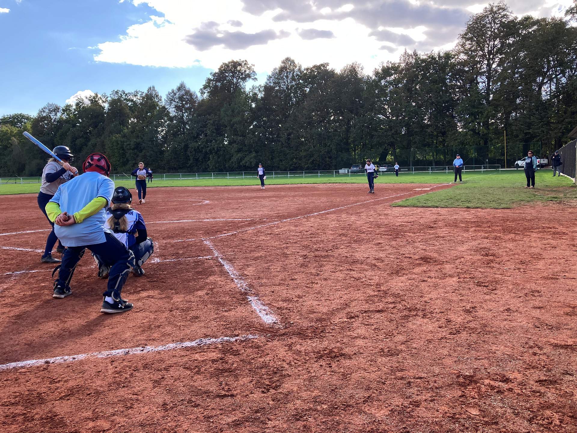 Po vydatném pátečním dešti bylo hřiště B jedna velká louže, osvědčené náhradní hřiště C bylo sice v IF regulérní, ale obrovská kaluž za první metou která sahala za plot do poloviny klece se opravdu vysušit nedala.