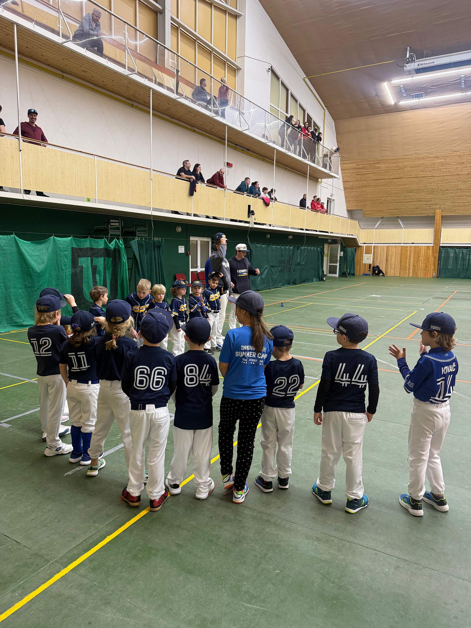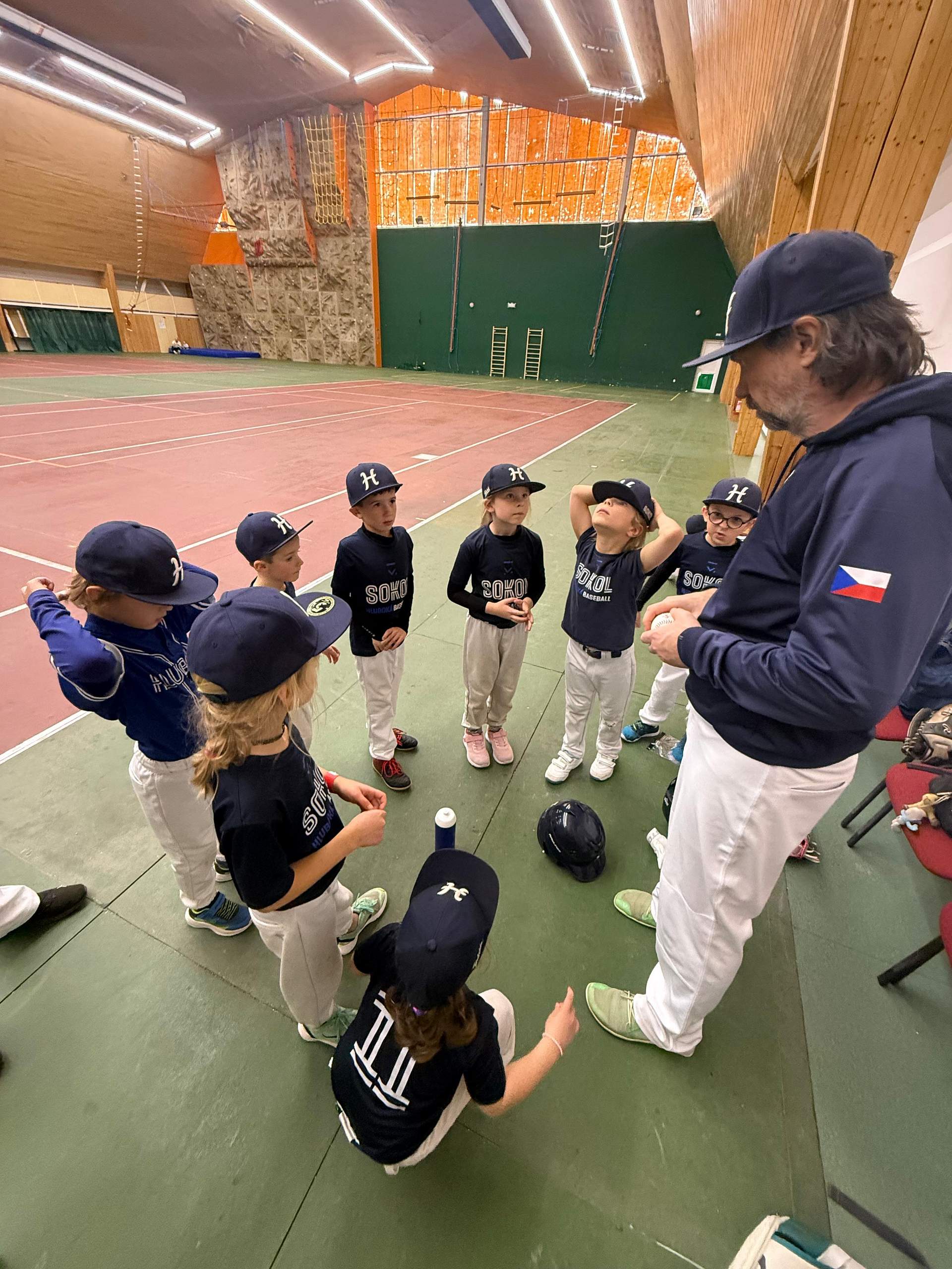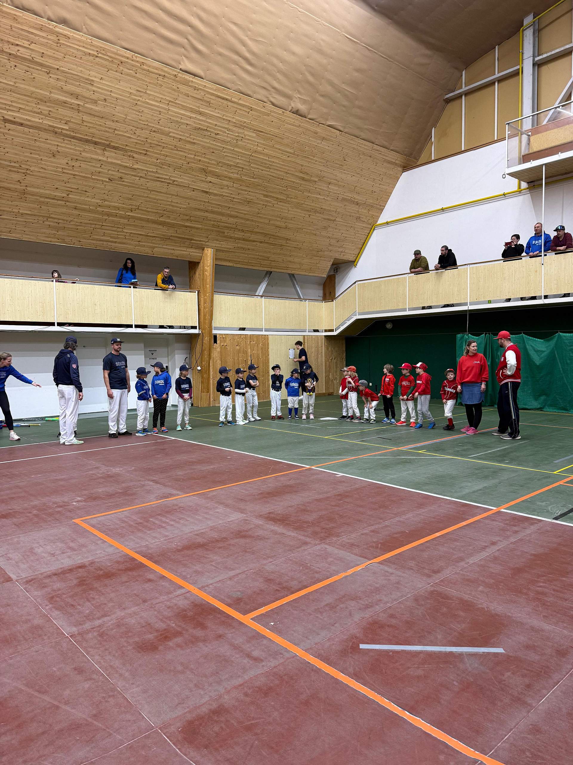 V neděli 8. března odehrála naše kategorie U7 halový turnaj v Hrotovicích. Hned na začátku nás čekalo překvapení – nehrálo se formou klasického T-ballu, ale zvolil se „coach ball“. Pravidla se upravila na 3 nadhozy od kouče a následně 2 pokusy ze stativu. Naši nejmenší se s tím ale poprali skvěle a v průběhu turnaje byl stativ potřeba čím dál méně.