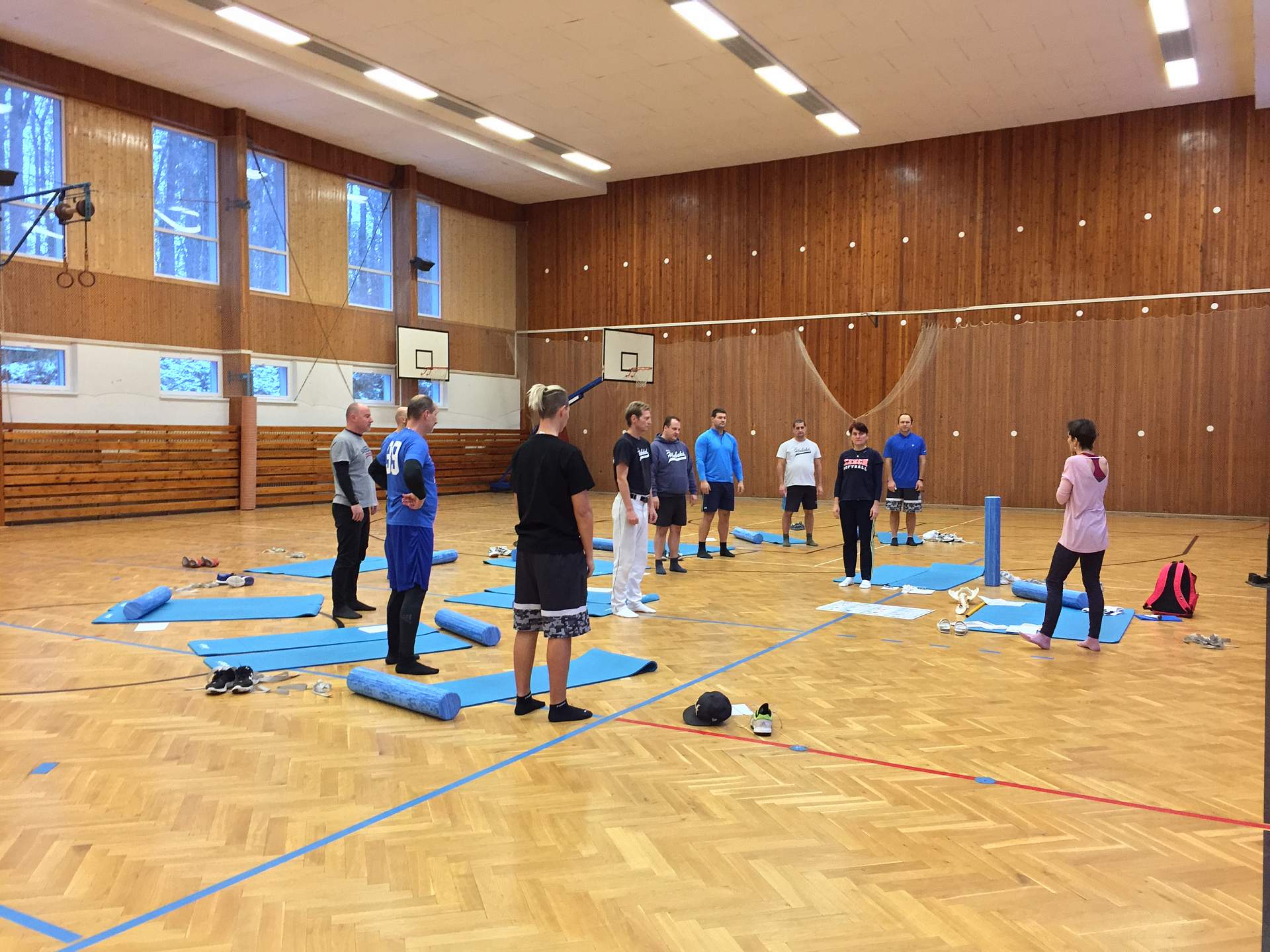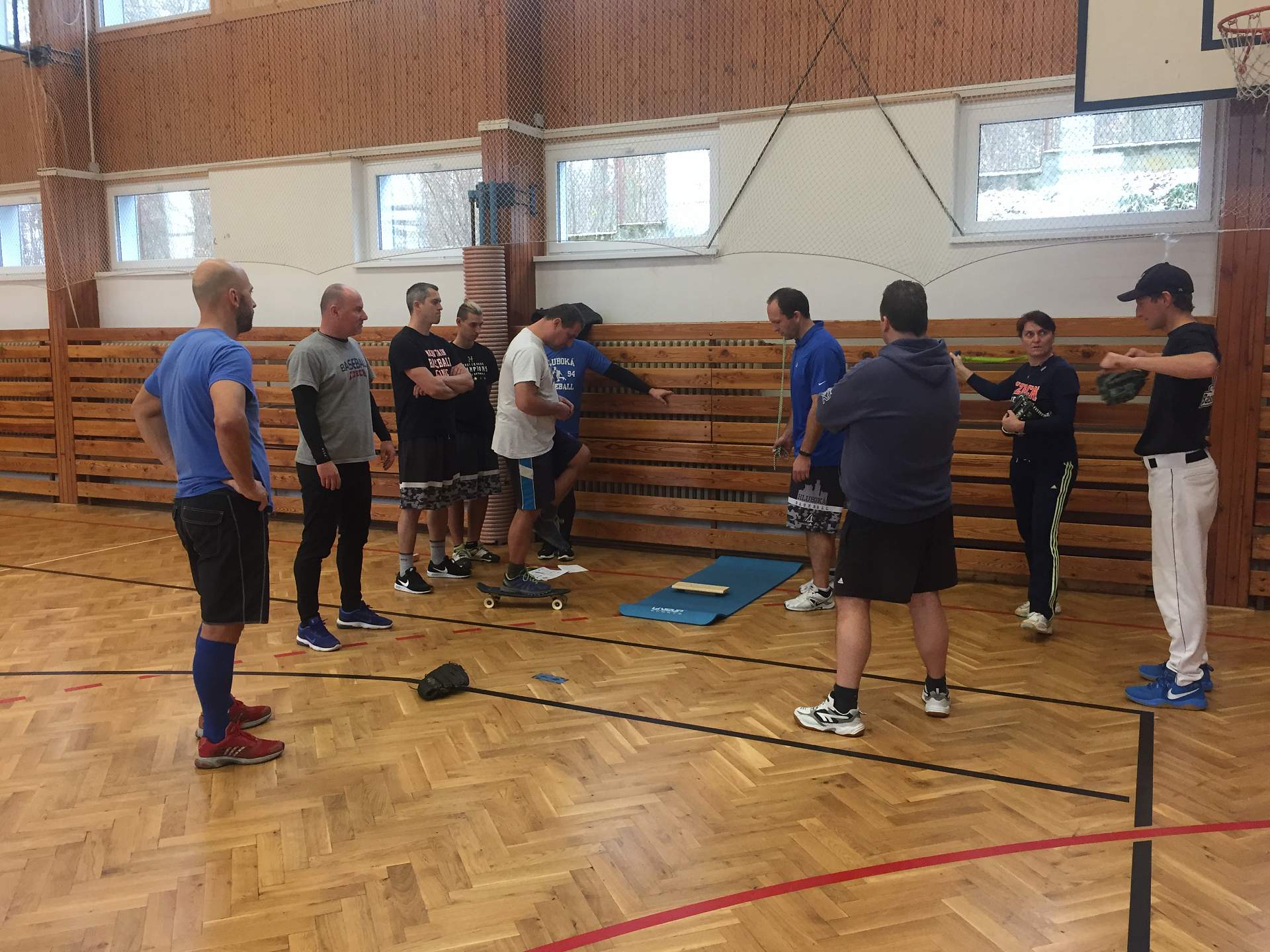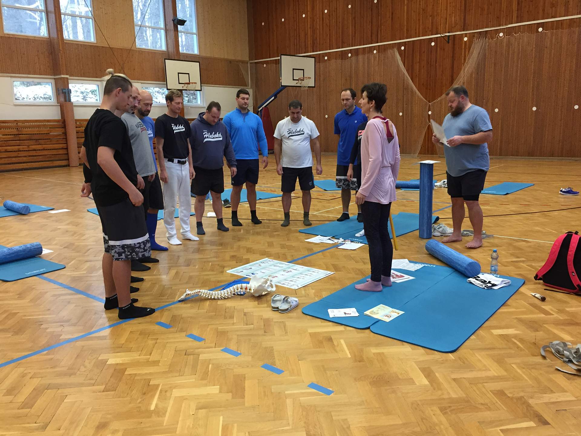 Jako první na programu byla přednáška a následná praktická ukázka cvičení na zdravá záda a pánevní dno od Jitky Moulisové. Trenéři si vyzkoušeli nejen posilovací, ale i balanční cviky, které Jitka provádí s našimi svěřenci. Nutno podotknout, že Jitka cvičí s hlubockými baseballisty už od loňského roku a dětem cvičení očividně prospívá.