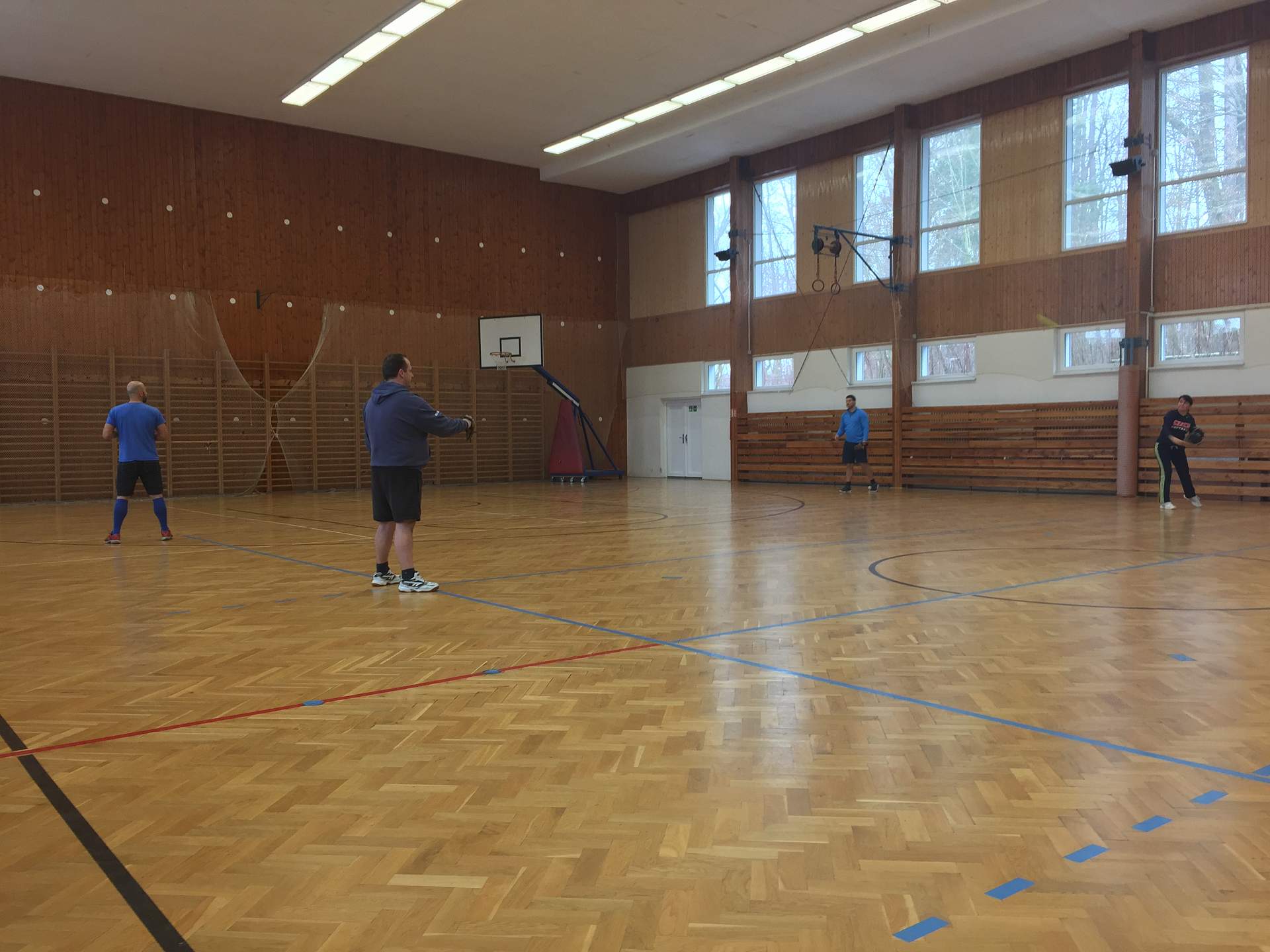 Po cvičení s Jitkou si slovo vzal Michal Pirgl, trenér kategorie U9 a dloholetý hráč hlubockého Sokola. Na programu bylo sjednocení házecího programu, který byl odprezentován v Nymburce samotným propagátorem Billem Holmbergem. Michal s Radkem a Ondrou postupně trenérům vysvětlili a názorně ukázali, na co je házecí program zaměřený a jak správně se má provádět. Všichni trenéři si pak mohli samotný házecí program vyzkoušet. To ale nebylo vše. Michal měl pro trenéry připravené i stanoviště na různé házecí drilly. Poté, co si všichni prošli několika stavišti, následoval blok otázek a diskuzí o házecím programu. Všichni trenéři se k programu stavěli pozitivně a rozhodli se jej zařadit do svých tréninkových jednotek.