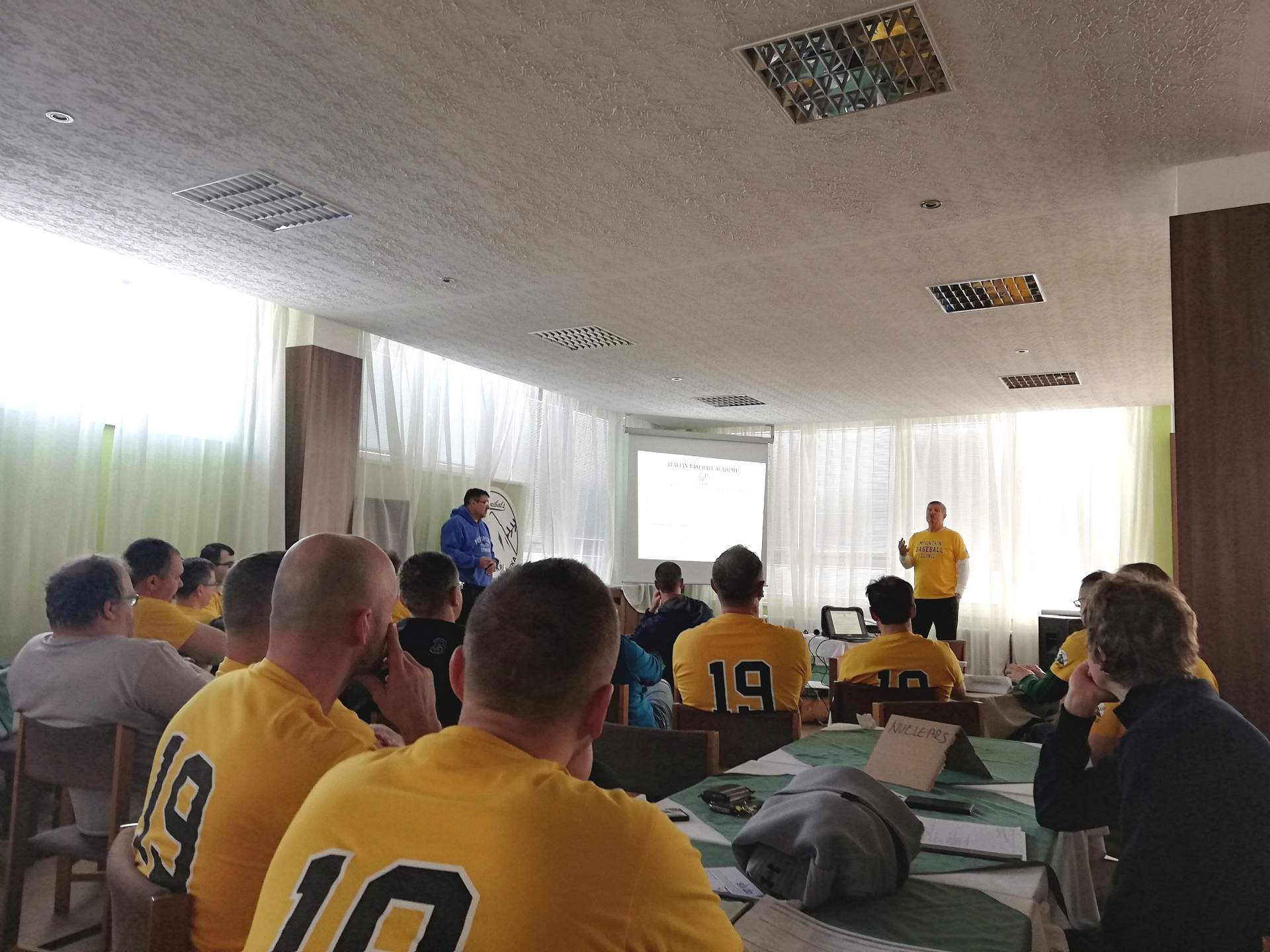 Přednášky se rozběhly už v pátek ve 14:30 a pokračovaly v návaznosti až do ranních hodin :O). Hlavním tématem byl házecí program Billa Holmberga a pálkařské drilly od Mike Griffina. Nechybělo samozřejmě rozdání cen za top hráče sezóny a celoživotní přínos baseballu. Každý z trenérů si dovezl domů spoustu poznatků, které zapojí do tréninkového plánu pro své svěřence.