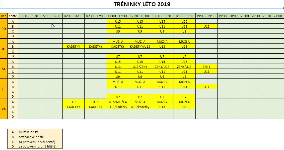 Tréninky - rozpis léto 2019